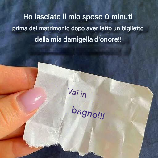 Era una mattina piena di gioiosa eccitazione. Jane, splendida nel suo abito bianco, si stava sistemando il trucco quando Cindy, la sua migliore amica e damigella d'onore, irruppe nella stanza. La abbracciò forte, un gesto insolito che tradiva un senso di urgenza. Cindy infilò un piccolo foglio di carta nella mano di Jane, sussurrando: "Leggilo ora". Il cuore di Jane sussultò.