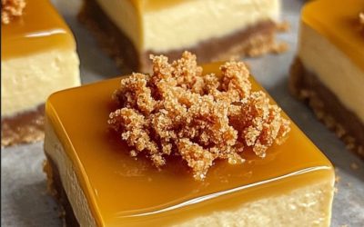 Quadrotti di cheesecake al caramello cremoso Ingredienti Per la base 2 tazze di briciole di cracker Graham 1/2 tazza di…