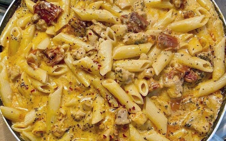 La pasta cremosa con pollo e mozzarella è un delizioso piatto di ispirazione italiana, con pollo tenero, mozzarella fusa e pasta cotta alla perfezione. Il suo sugo ricco e cremoso lo rende un piatto apprezzato da tutti, ideale per pranzi in famiglia o occasioni speciali.