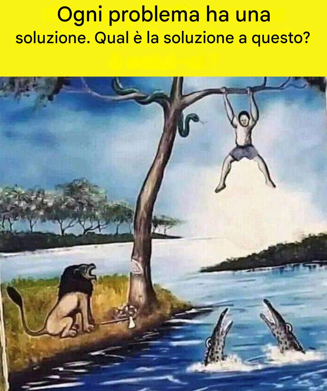 1) L’uomo intrappolato tra un serpente, un albero, un leone e i coccodrilli